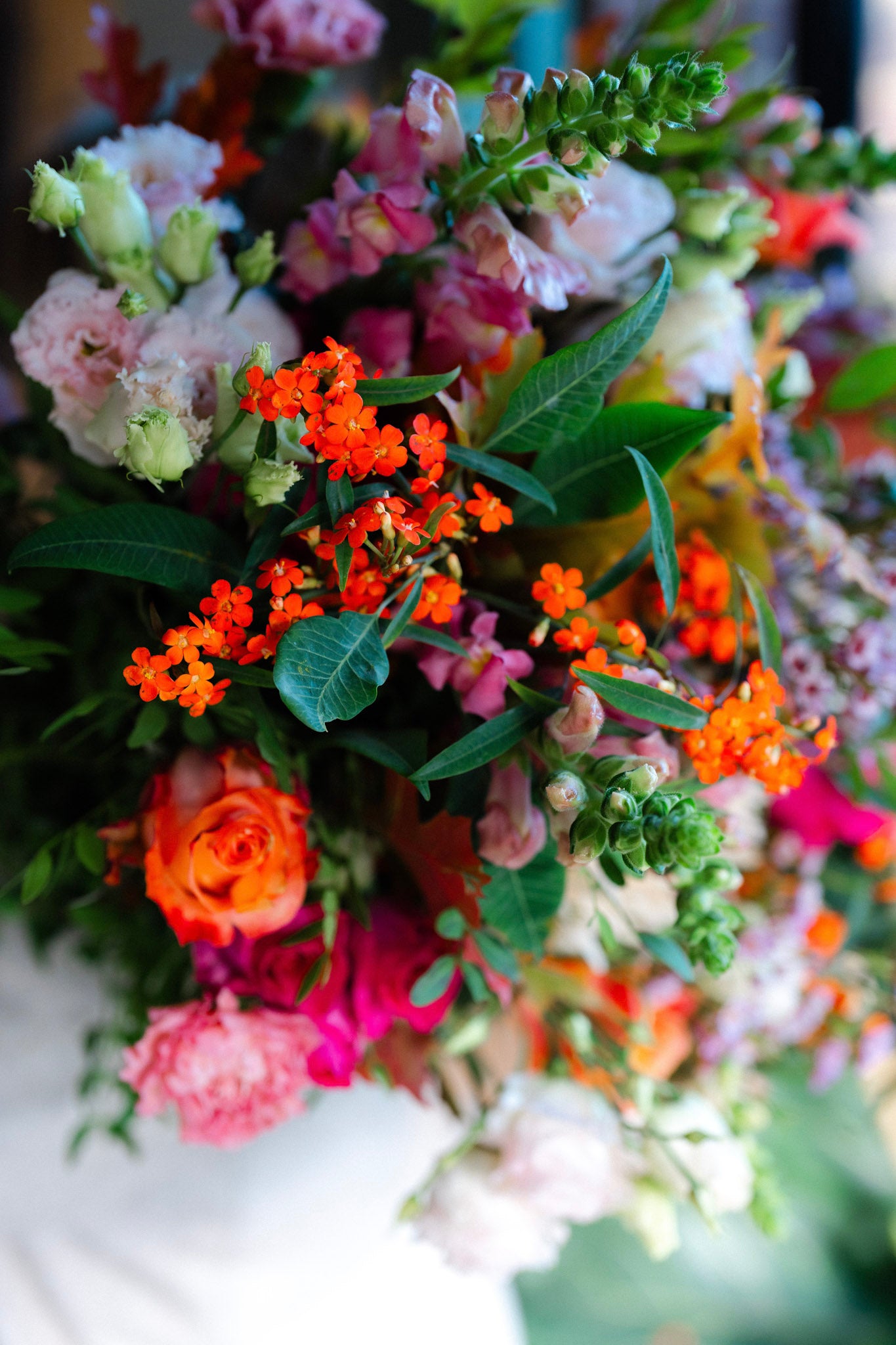 Expect striking Avignon blooms and Miss Piggy roses paired with hot pink tea roses and burnt orange euphorbia — the kind of colour clash that just works. Waxflower adds a delicate fragrance, while bold snapdragons and seasonal foliage bring texture, height, and that unmistakable “fresh from the flower bar” Mad Lilies energy.