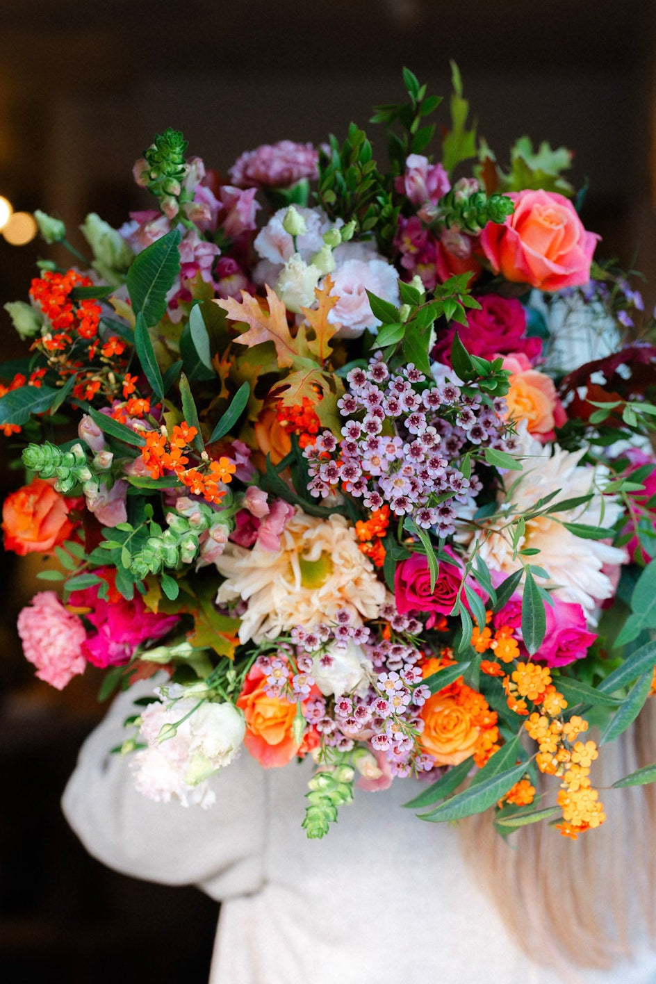 Our Wild Ember bouquet smoulders with the season’s hottest colour palette of fiery pinks, molten oranges, and glowing corals. It’s a love letter to those lingering autumn sunsets that set the sky alight.